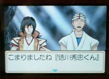 SAMURAI DEEPER KYO ゲームボーイアドバンス用ゲームへっぽこプレイ日記。 ■幸村編 御前試合 幸村「どうやらその気になってくれたようですね。 狂「ああ・・・ だから狂さんは最初から決まってたんだってば! 狂さんの村正が鳴ってます 村正も狂さんと幸村を祝福しているのでしょうか。 あれっ いきなりミゲイラが来てそして捨て台詞を残して去っていったよ 狂さんを葬るらしい 幸村「ここにいるということは あの人も出るつもりだろうね 狂「少しはおもしろくなってきたな といいながら(名残惜しそうに)去っていく狂さん そこへ信幸兄さん登場 信幸「帰れ…真田幸村 幸村「帰らなきゃ どうするつもり? 信幸「帰らなければ…死ぬだけだ 幸村「つれないな 久しぶりにあったのに… ねぇ、信之兄さん 漢字間違ってないですかー!!! 最悪だな!アニメ!(笑) そうこうしていると周りを囲まれたみたい 幸村「かこまれている… みんなまとめて殺す気か…おおおお!幸村のポーズが変わったーーー!! 真田の家より大事なものがあると答える兄さん 幸村「それが家康とでも言うのですか?」 信幸「今 それに答える ヒマはない 幸村「くっ・・・ バトルへ 御前試合会場を駆け抜ける幸村 幸村「これが徳川だよ 信幸兄さん。 あなたが見つけた真田の家より大事なものって いったいなんですか? 信幸「…徳川秀忠様だ 紅虎「!!!! みたいな いつの間にそんな話になってんだ 兄さんは紅虎の為にその命を使うと決めたようです 幸村「真田の家を捨てるというんだね 信幸「お前は心の信じるまま生きろ もう生きてるよね、狂さんしか見えてないもん 幸村「そうか…じゃあまたいつか… 去っていく兄さん…名前間違ったままで…