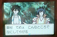 SAMURAI DEEPER KYO ゲームボーイアドバンス用ゲームへっぽこプレイ日記。 ■幸村編 つづきだから狂さん狂さん言い過ぎですからっ…!!! (グッジョブ!) 狂さんとゆやちゃんが小太郎にー! そうこうしてると親玉っぽい人が登場 ハイラ?いたっけ?そんな人。