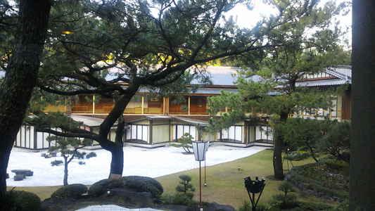 旅館外観 昨日の渡り廊下はこれの右側に続いている