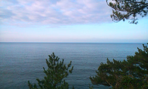 白い矢印ルートで海沿いを進みます 今まで 日本海 と 太平洋 は さんざん写真撮ってきたけど なんとここは